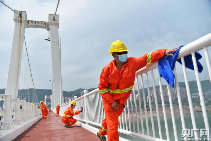 工人對橋梁進行維護(央廣網(wǎng)發(fā) 通訊員供圖)