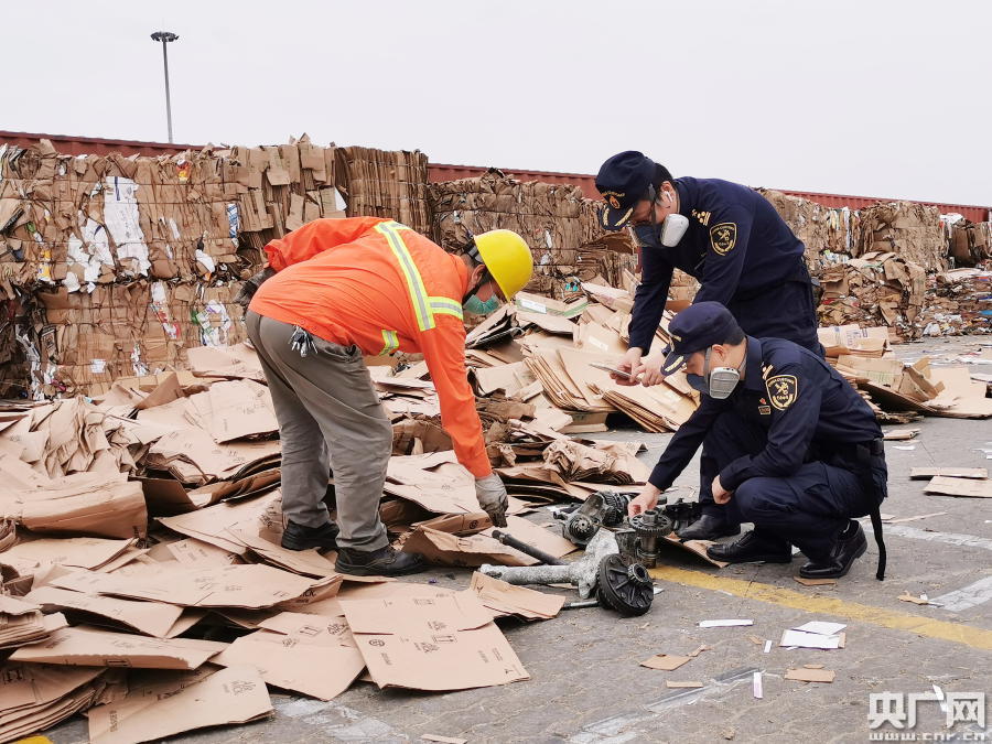 海關(guān)關(guān)員從廢紙中查出夾雜的機(jī)械部件(王軼星 攝)