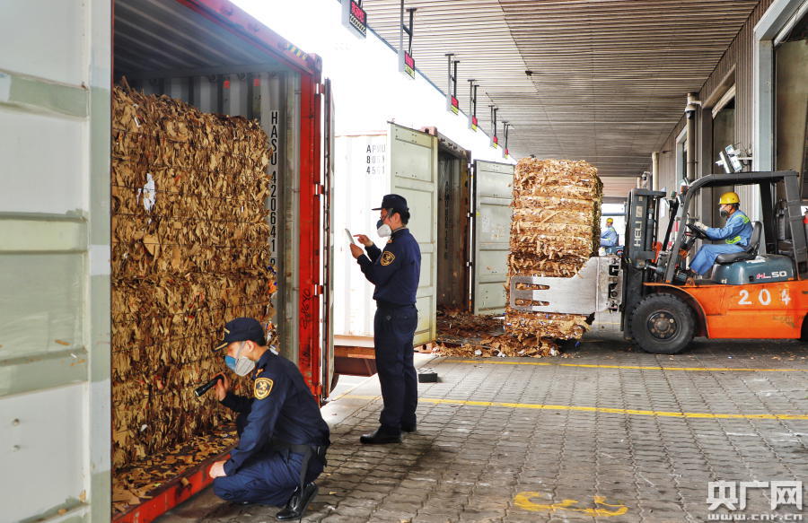 海關(guān)關(guān)員對(duì)進(jìn)口廢紙進(jìn)行查驗(yàn)(王軼星 攝)
