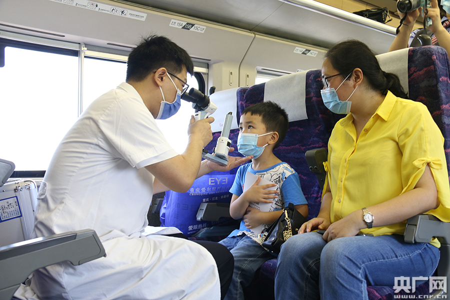 央廣網重慶6月6日消息(記者趙聰聰 通訊員鐘潔 趙思云)“近距離用眼過多和戶外活動時間過少,是導致近視的主要環境因素,疫情期間許多孩子都存在這樣的情況,因此需要增加戶外時間,讓孩子暴露在大自然光線環境下。”6月5日,重慶客運段的C6004次列車上,重慶某專業眼科醫院黨員志愿者高陽醫生對前來咨詢的黃女士說道。