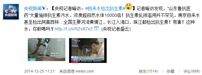 記者暗訪發(fā)現(xiàn),“山東魯抗醫(yī)藥”大量偷排抗生素污水,濃度超自然水體10000倍!抗生素亂排濫用并不罕見,南京自來水甚至檢出阿莫西林…全國主要河流黃埔江、長江入?、珠江都檢出抗生素!有害!這種水,你敢喝嗎?(央視記者盛云)