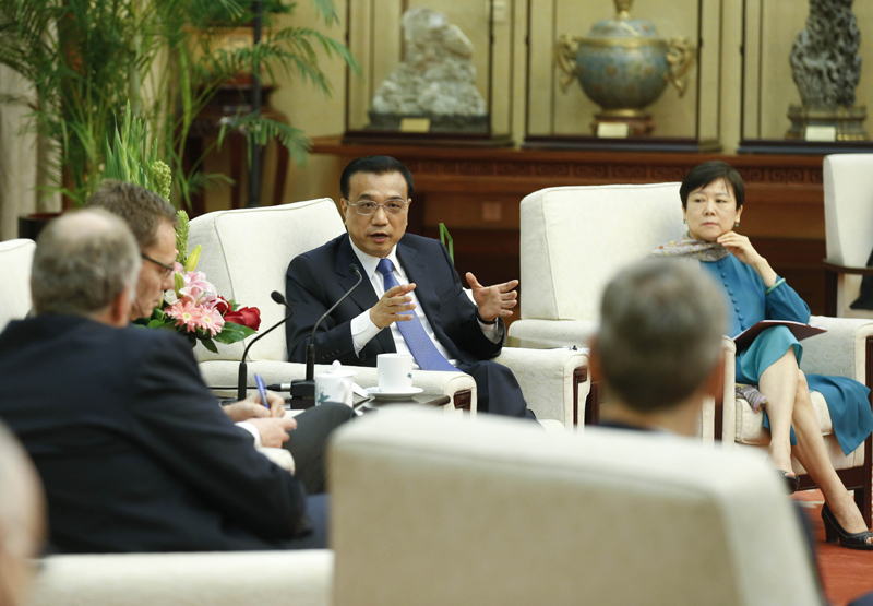 李克強會見出席全球首席執行官委員會第三屆圓桌峰會的代表并座談