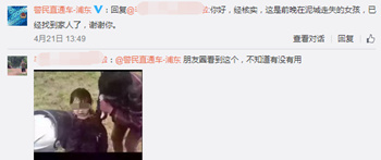 近日,微信、微博等社交媒體流傳一條“被淋濕的哭泣小女孩”的視頻,配發(fā)文字稱“這小女孩被人販子拐騙讓好心攔住了,誰(shuí)的群多發(fā)出去,讓寶貝回家!尤其發(fā)在南方,四川,云南,貴州廣西,江浙,廣東廣西戰(zhàn)友群里或社會(huì)群里!因?yàn)槁牽谝羰悄戏娇谝簦髷U(kuò)散”。4月21日,上海浦東警方回復(fù)稱,經(jīng)核實(shí),這是19日在泥城走失的女孩,當(dāng)晚已經(jīng)找到家人了。25日,公安部刑事偵查局副巡視員陳士渠在微博上回應(yīng)此事稱:“接報(bào),事發(fā)上海浦東泥城鎮(zhèn),經(jīng)浦東警方核實(shí)孩子并非被拐,已經(jīng)回家。”