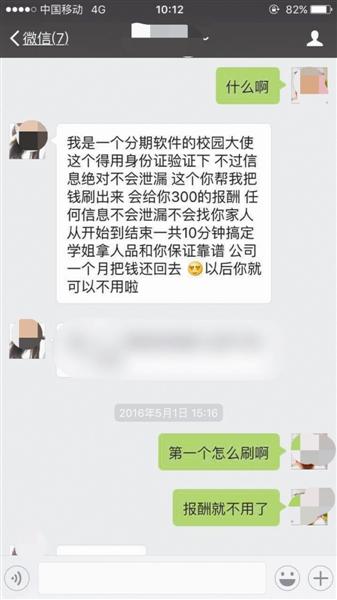 李潔(化名)是該校大三的學生,她通過其他同學認識了王云。今年1月,王云告訴李潔,自己是大學生借貸平臺“優分期”的校園大使,想讓李同學注冊該平臺賬戶,以幫她完成業績。由于平日關系較好,李潔答應了王云的請求。但注冊完后,王云讓李潔從平臺內借錢并提現,稱可以給李潔相應的傭金,“她前后一共讓我提現了5次,第一次提現2000元,第二到第五次都是1000元。”