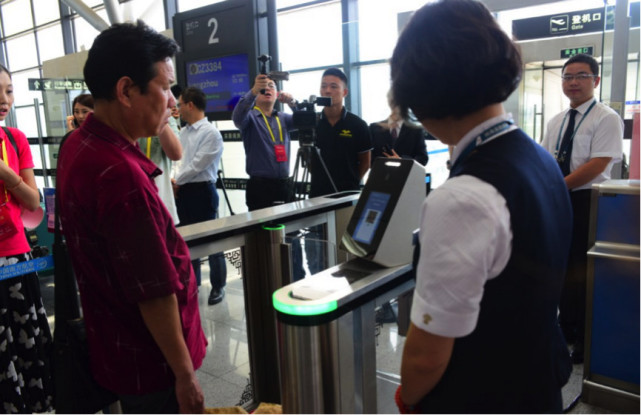 今年6月底,南航在河南南陽機場啟用國內首個人臉識別智能化登機系統。無需證件、登機牌,在登機口前,旅客只需“刷臉”即可秒速開閘登機。