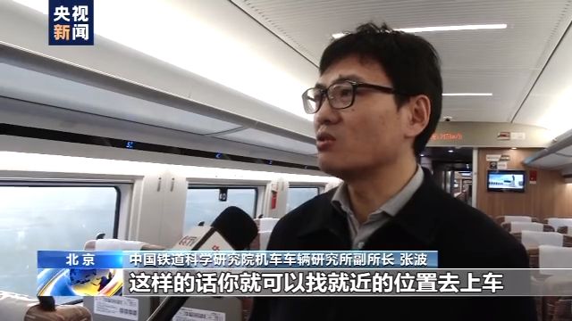 中國鐵道科學研究院機車車輛研究所副所長 張波:比如咱們從外面準備上車之前,你可以看出這個座號大概在車的哪一端,這樣就可以找就近的位置上車。車內光線的調節也實現了智能化控制,比如進入隧道的時候,沒有人的時候燈光能自動調節,這樣就能讓旅客感覺更加舒適。