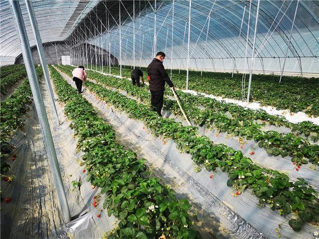 巴宜區更章鄉門仲村群眾正在溫室大棚里對草莓進行管理