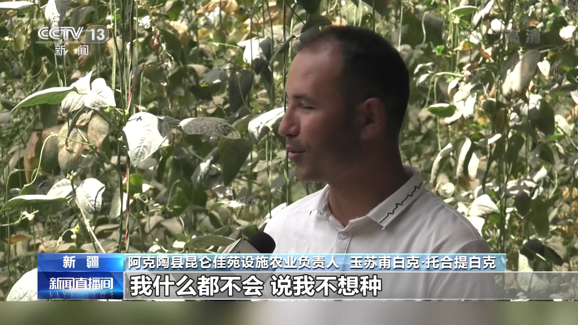 阿克陶縣昆侖佳苑設施農業負責人 玉蘇甫白克·托合提白克:然后他來找我,他說我現在不會種,我什么都不會,我不想種,這樣說。