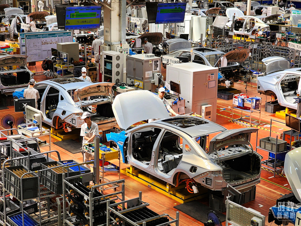 △國內一家車企制造車間的新能源汽車生產線。(圖/視覺中國)