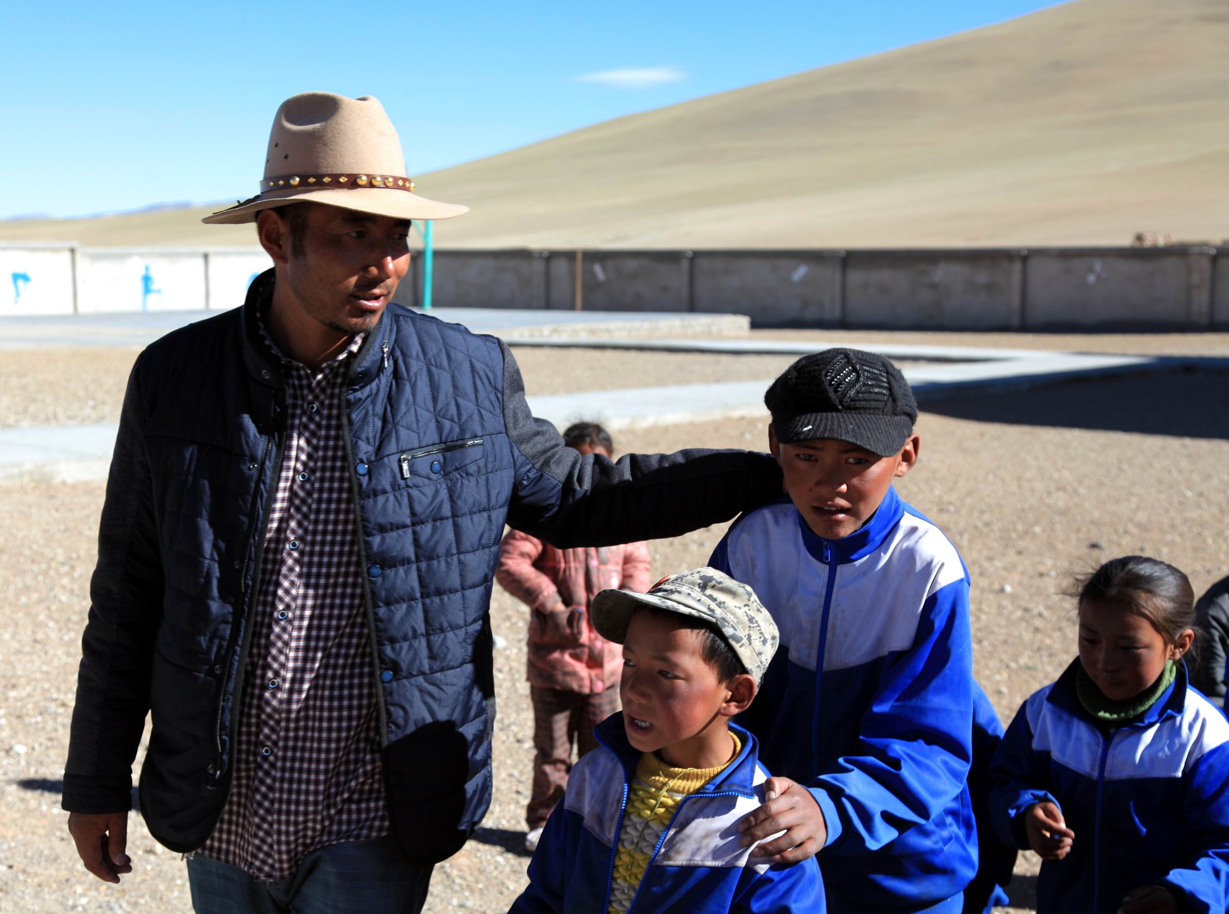 位于西藏日喀則地區仲巴縣最北部的仁多鄉,距離拉薩市有1000多公里。那里平均海拔4800米,即使最暖的夏季,那里依然草地發黃,空氣稀薄寒冷。教室里,孩子們朗朗的讀書聲打破了草原的寂靜,校長普瓊正在各年級巡查著。