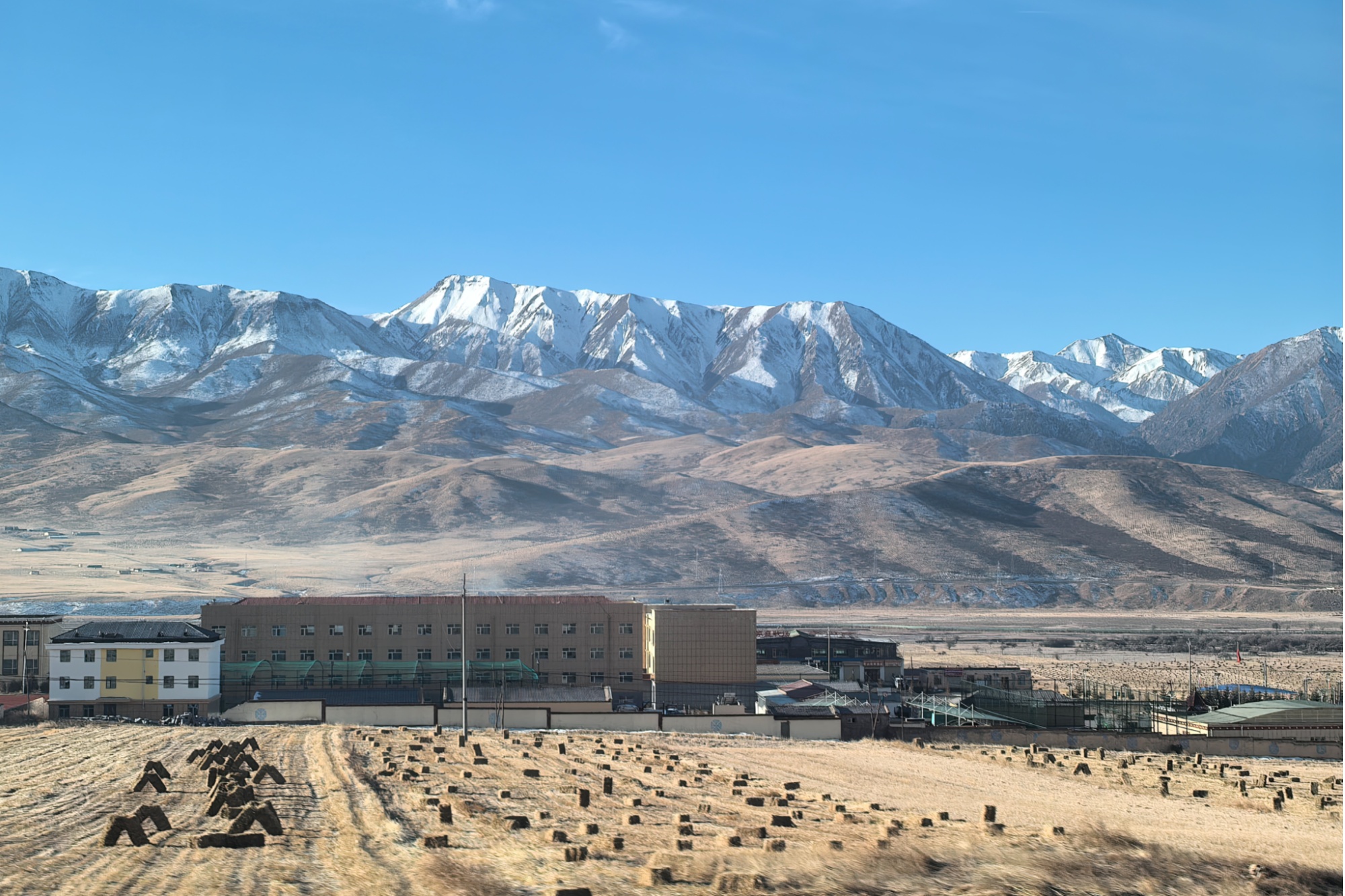 冬日的風掠過祁連山脈,群山銀裝素裹。望向青海湖,湖水初凝,冰沿蜿蜒,與深藍的湖面相映。一幅雪山冰湖的壯闊冬景圖,正在海北展開。