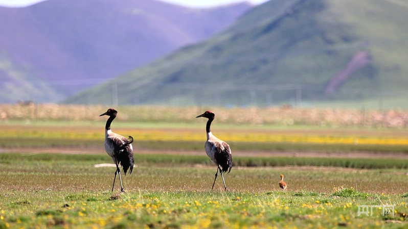 黑頸鶴寶寶濕地學步 黃河岸邊“鶴”家歡