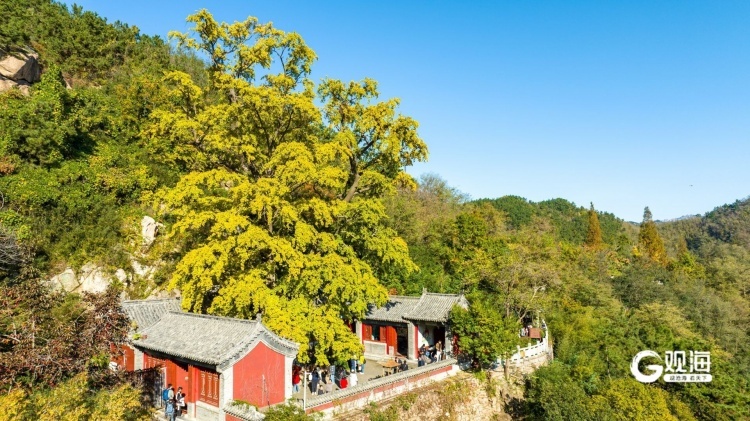 公園內的千年古銀杏樹呈現金黃璀璨的景象,搭配竹林形成獨特視覺效果。