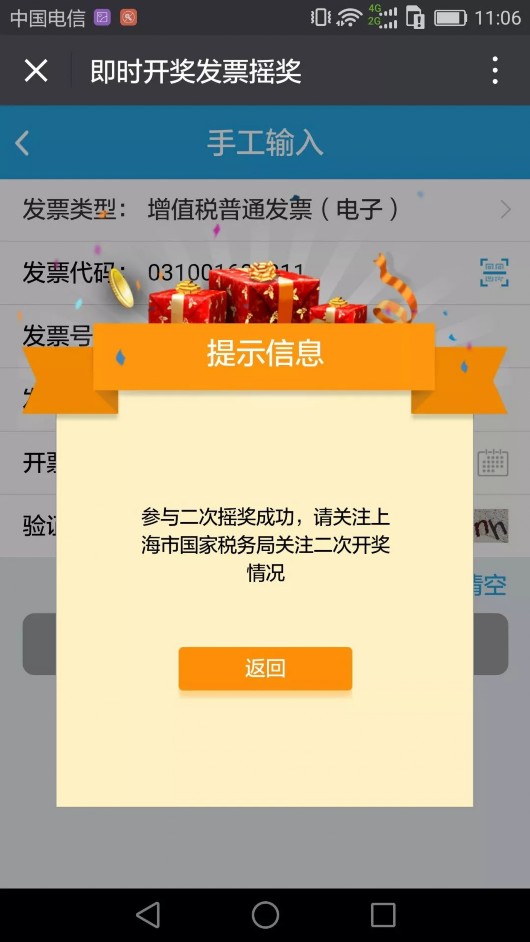 如果出現下方界面,感謝您對有獎發票試點工作的支持!