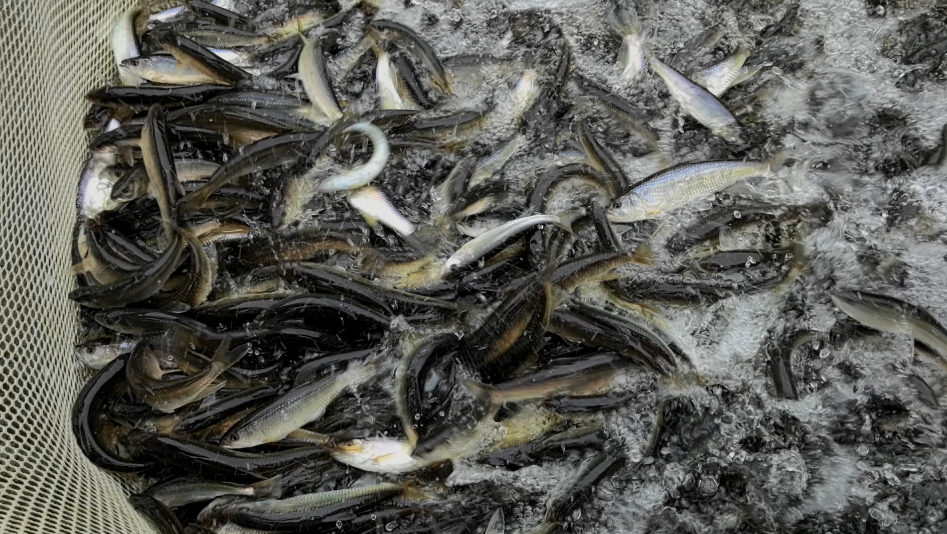 “我們六月份大概投放了100萬尾魚苗,到現在四個月左右就上市了,產量在20000公斤左右,產值在80萬元左右。”漢陰縣農村供水公司漁業部負責人王進介紹道。