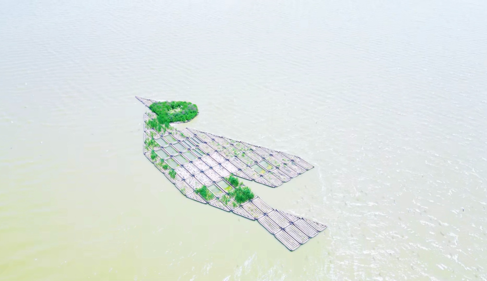 屏幕里的這座“綠島”,正是今年5月剛剛落成的七里海濕地生態浮島。
