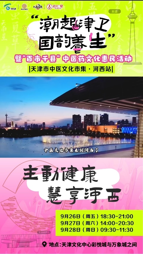 9月26日至28日,“潮起津衛 國韻養生”天津市中醫文化市集河西站將隆重舉行。