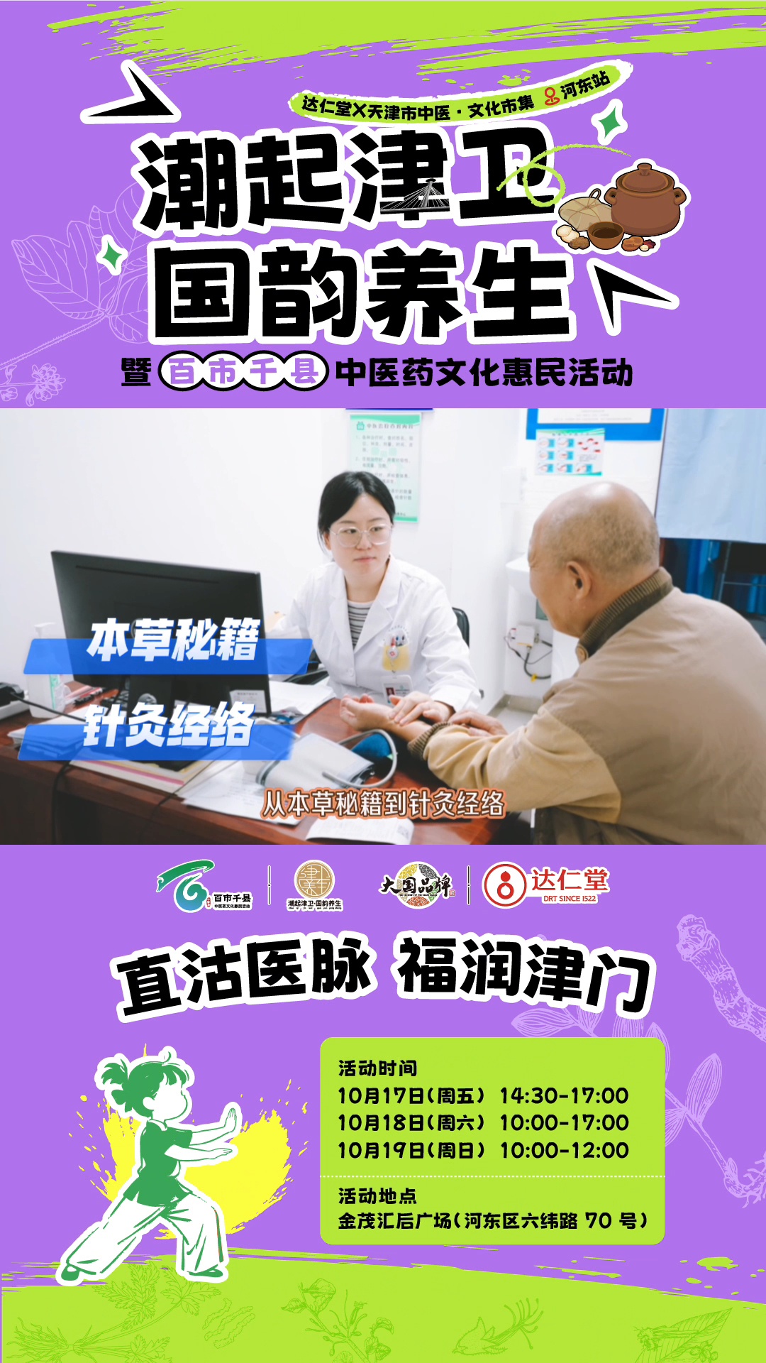 10月17日至19日,由津藥達仁堂獨家總冠名的“潮起津衛·國韻養生”天津市中醫文化市集河東站將隆重舉行。
