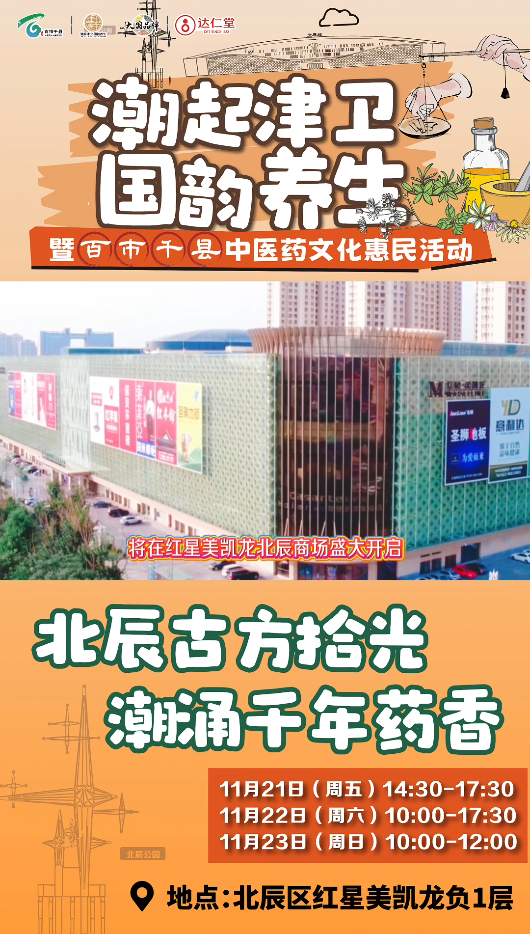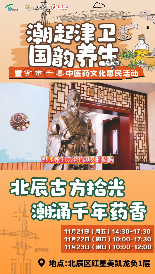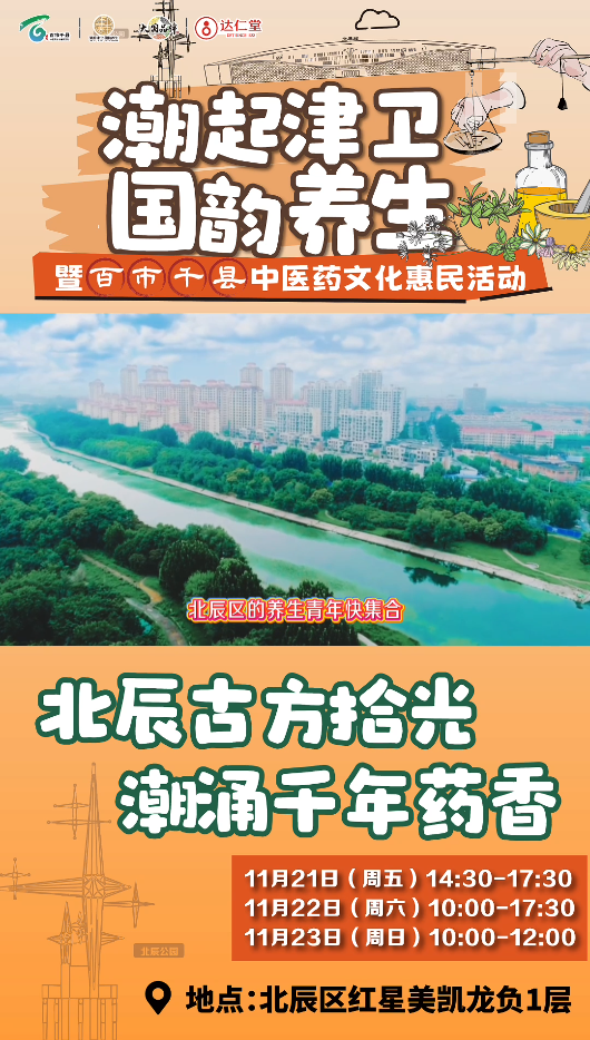 11月21日至23日,“潮起津衛國韻養生”天津市中醫文化市集北辰站將隆重舉行。