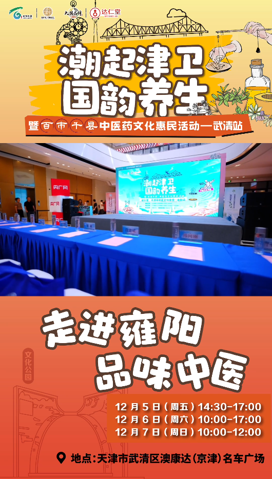 12月5日至7日,“潮起津衛 國韻養生”天津市中醫文化市集武清站,將在天津市武清區澳康達(京津)名車廣場正式啟幕。