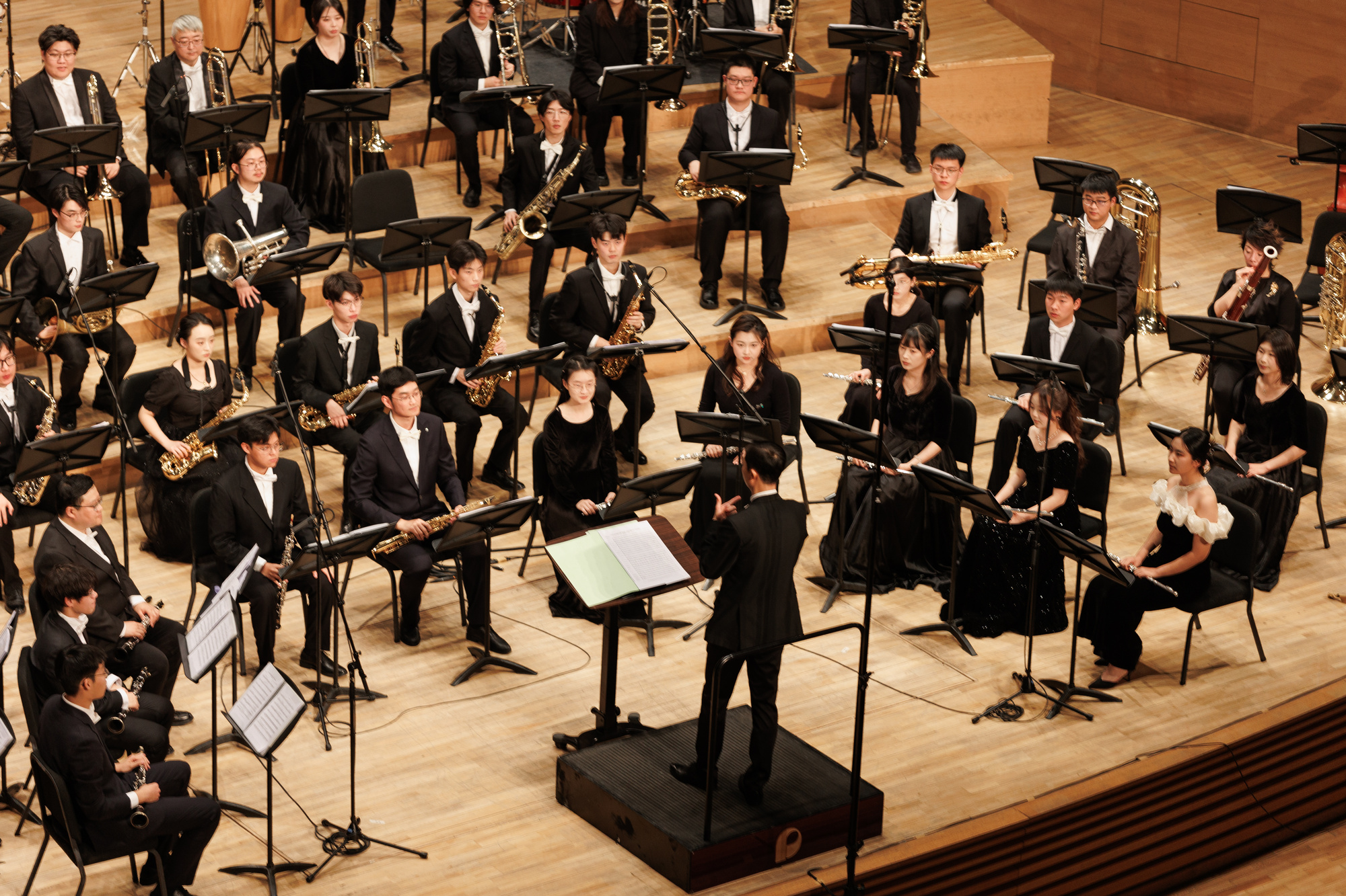 音樂會在跨越不同文化的藝術對話中展開。上半場,天津大學北洋軍樂團以精湛技藝演繹了多首經典作品,從高貴莊嚴的《世紀序曲》到中國新疆維吾爾族的《庫洛萊納的姑娘》,從熱情奔放的《巴西的水彩畫》到溫暖細膩的《如果愛》,從跌宕起伏的《古代英雄傳奇》再到人與自然和諧統一的《與白鯨航行》,展現了軍樂團同學們扎實的藝術素養和豐富的表現力。在觀眾熱烈的掌聲中,上半場音樂會迎來了激動人心的“彩蛋”:一級指揮、中國人民解放軍軍樂團第十任團長張海峰作為特邀指揮登臺,執棒北洋軍樂團返場演繹了《鋼鐵洪流進行曲》與《無人智勝進行曲》,展現了現代軍樂的磅礴氣勢與時代特色,激昂的旋律鏗鏘回響、點燃全場。