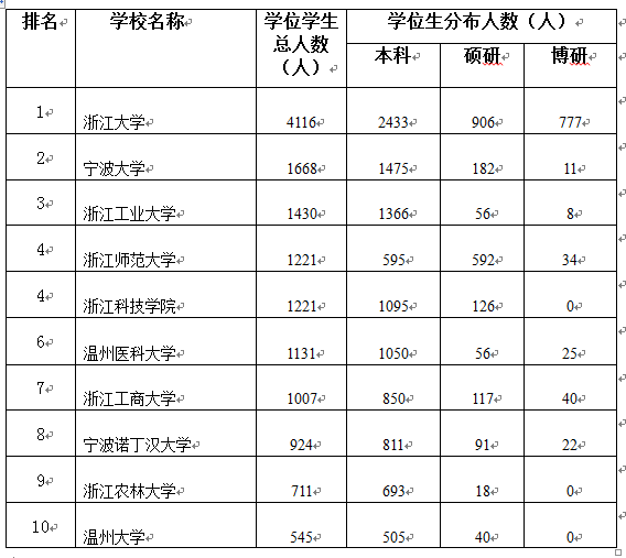 表二:按學(xué)位生總?cè)藬?shù)排名