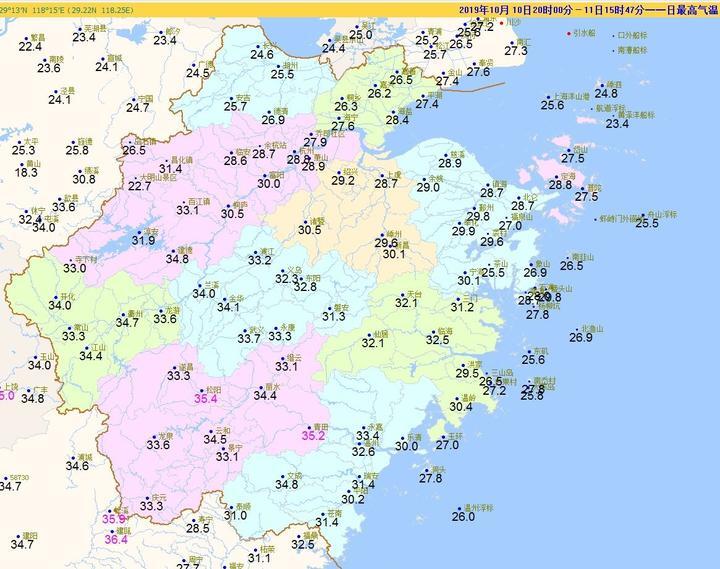 在近期的冷空氣影響下,我國東北和華北等地氣溫在波動起伏中逐漸下行。但就在北方氣溫下滑時,浙江氣溫卻出現大反彈。截至昨日15時45分,浙西南高溫依舊,松陽35.4℃,青田35.2℃,衢州34.7℃。