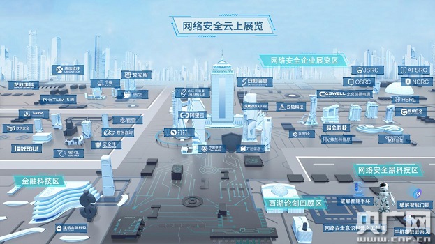 值得一提的是本次峰會特別推出了網絡安全云上展覽,以三維呈現的方式在互聯網展示西湖論劍回顧、網絡安全黑科技、金融科技、網絡安全企業展覽等主題展區,通過構建虛擬城市空間展示未來網絡安全世界。